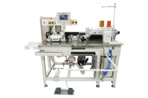 Automatic programmable sewing machine for fly, single needle, lockstitch, with automatic loader and stacker/